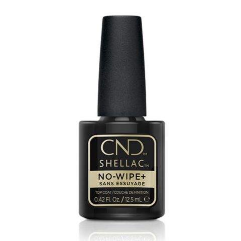 De CND Shellac No Wipe + Top Coat is een nieuw ontwikkelde topcoat die de nagels een extreme glans geeft. Je kan de topcoat aanbrengen over de CND Shellac, gel en acryl. Pigmenten, hologram en chrome inpoetsen kan ook met deze topcoat. De nagels worden tot drie weken voorzien van ultieme glans, zonder plaklaag!