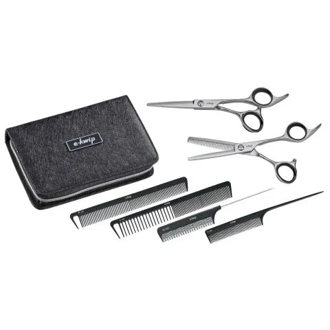 E-Kwip is een kwalitatief merk dat een breed assortiment aan roestvrijstalen scharen biedt: knipscharen, effileerscharen en sets. Bij dit merk kun je telkens rekenen op scherpe snijbladen en een hoogwaardige afwerking. Bovendien hebben hun scharen een fijne punt, wat ervoor zorgt dat je nauwkeurig en snel kunt knippen. Alle scharen die je nodig hebt vind je in de E-Kwip Starterset 2.0. E-Kwip scharen hebben een ergonomisch design, ze zijn zo ontworpen dat je steeds een ontspannen kniphouding hebt. Op die manier krijg je geen kramp in je vingers en voelen je handen zelfs na een volledige dag knippen niet vermoeid aan.