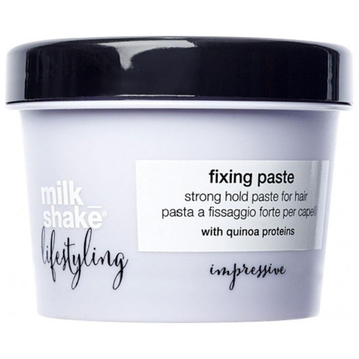 Milk Shake Lifestyling Fixing Paste 100 ml geeft textuur en heeft een sterke hold. Met deze fixing paste zorg je er makkelijk voor dat je haar wordt gestyled. Het heeft een niet verzwarende werking en gaat pluis tegen.
