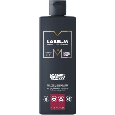 Label.M - Amaranth Thickening Shampoo is een vegan en sulfaatvrije formule voor fijn tot medium haar. Het maakt het haar voller door het verdikken van de haarvezels.